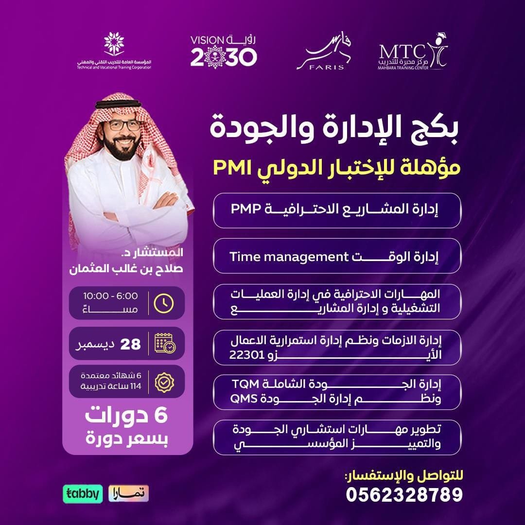 • شهادة بإسم إدارة المشاريع الإحترافية PMP ( 5 أيام 35 ساعة ).