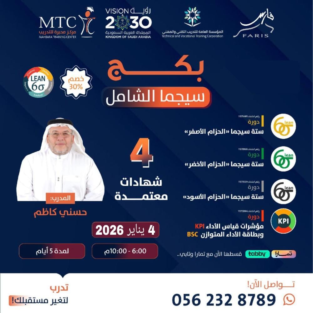- شهادة بإسم لين ستة سيجما الحزام الأسود (5 أيام - 25 ساعة).